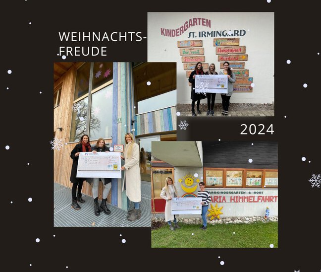 An die Kindergärten St. Irmingard, Maria Himmelfahrt und dem Haus für Kinder am Gänsbach in Grassau wurden als kleine Unterstützung für Kinder und Eltern sowie den Betreuern jeweils eine Spende von 500,00 Euro ausgehändigt. Fr. Lutzenberger, stellvertretende Leitung des Kindergartens St. Irmingard möchte gerne in die Ausstattung des Turnraums investieren, um den Kindern mehr Bewegungsfreiheit bieten zu können. Fr. Kink, Leitung des Kindergartens Maria Himmelfahrt freut sich auf die Anschaffung von neuen Holzpferden, die den Kindern einen spielerisch- und eigenverantwortlichen Zugang zum Thema Tiere ermöglichen dürfen und auch Fr. Kirner, Leitung des Hauses für Kinder am Gänsbach setzt auf eine neue Spielküche oder einen Kaufladen, um das eigenständige Potenzial der Kinder in Rollenspielen zu fördern. Die Firmen MH Mix & Hornberger Bau GmbH und die Wohnlinie GmbH wünschen den Einrichtungen eine schöne Weihnachtszeit und im neuen Jahr weiterhin viel Spaß und Freude mit den Kindern!